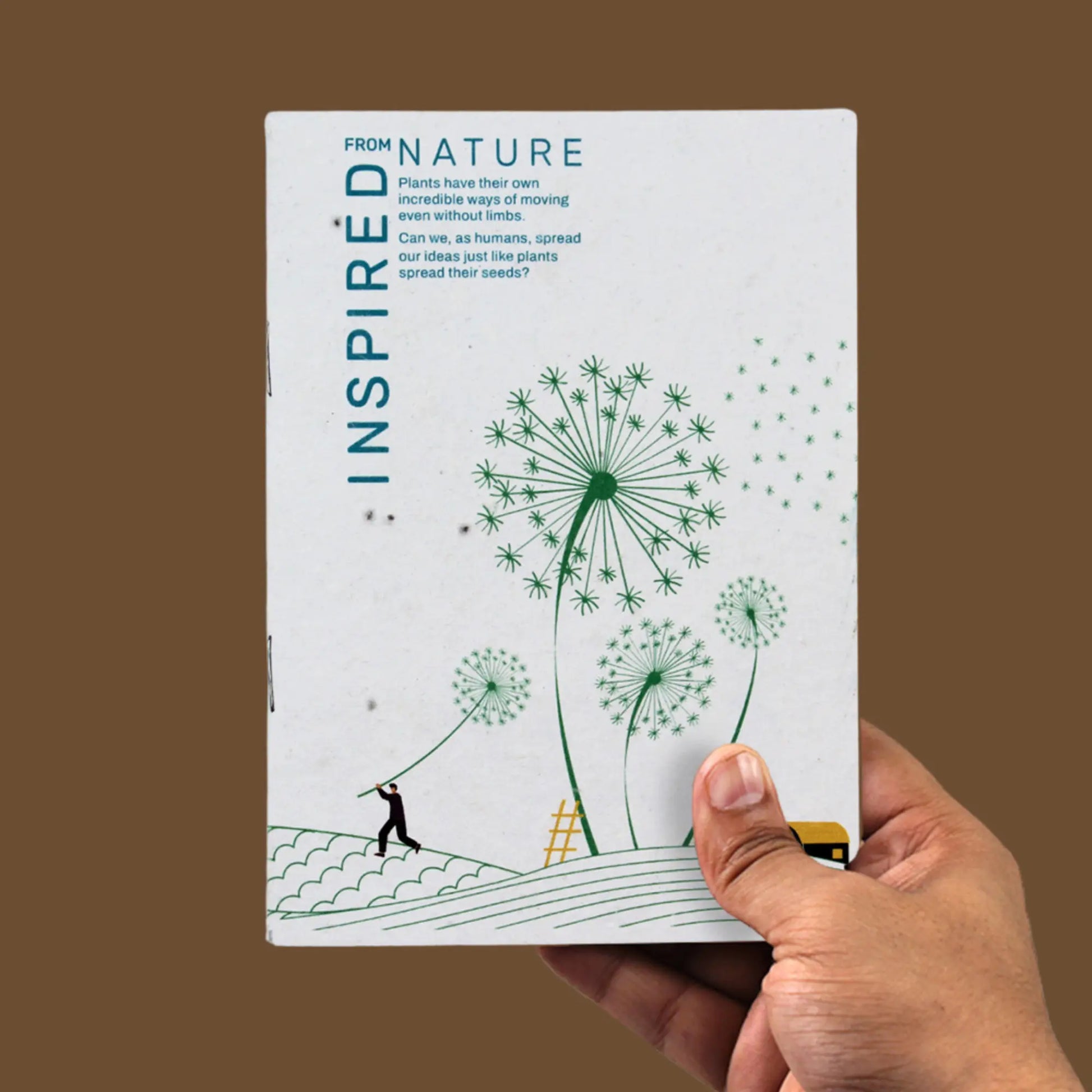 Write with impact using our plantable seed paper notebook in 5"x7" standard format. It comes with 40 ruled pages (80gsm) for smooth writing and a center pin binding for convenience. The cover, made of plantable seed paper, grows into plants when planted, making it more than just a notebook. Compact yet practical, it’s perfect for everyday writing, journaling, or work notes. A thoughtful eco-friendly choice for corporate gifts, conscious stationery lovers, or sustainable lifestyles, this notebook blends luxury, simplicity, and responsibility in one.