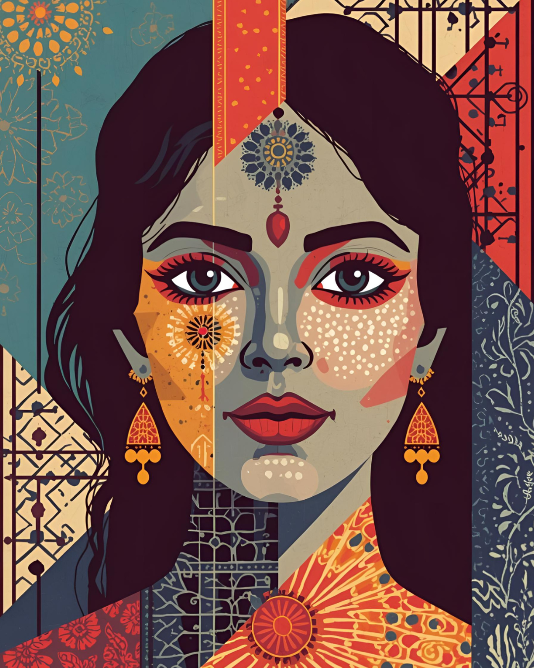Cultural Abstract Portrait Canvas Wall Frame – Vibrant Indian Art Print for Home Decor